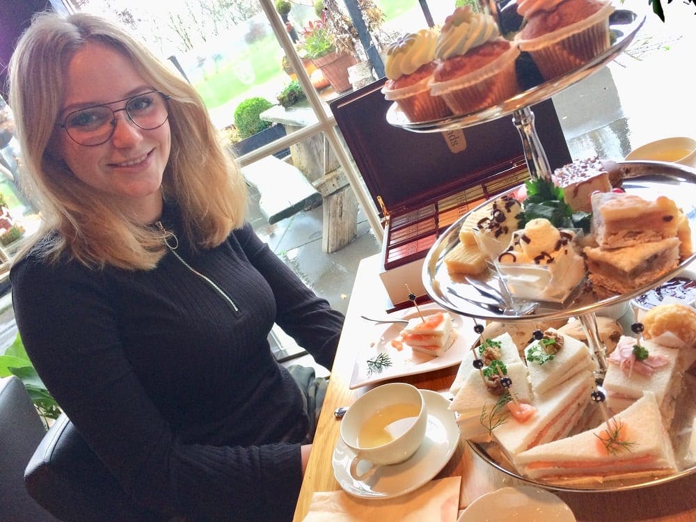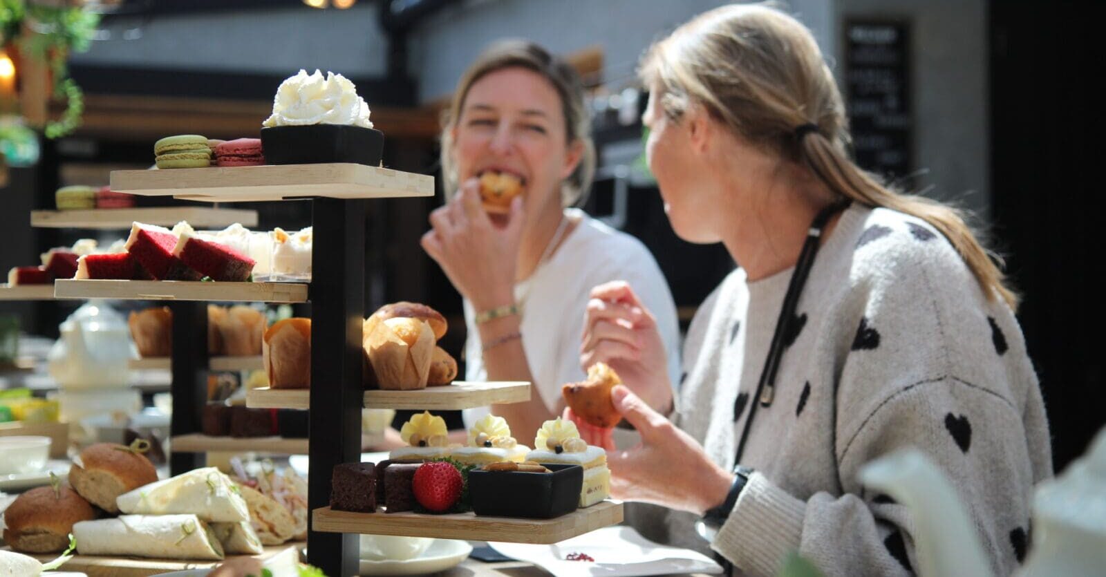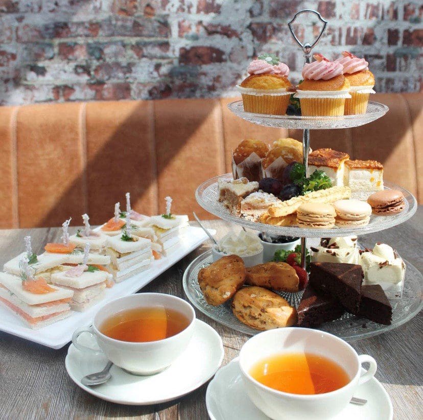 Geniet van onze 2½ uur durende high tea waarbij wordt gestart met een warme hartige quiche. Aansluitend serveren wij vers belegde mini sandwiches met eiersalade en brie, wrap met gerookte zalm, scones met clotted cream en marmelade, brownies van pure chocolade, muffins, luxe cupcakes, petitfours, macarons, zoute koekjes, petit grand dessert en onbeperkt thee met diverse smaken. Vanaf twee personen, minimaal één dag van te voren boeken.
